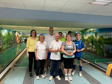 Am Samstag, 23.08.2025 war es wieder so weit, zwei Abteilungen der SGA, die Boule- und Kegelabteilung trafen sich, um gemeinsam einen schönen Nachmittag zu verbringen. Eingeladen hatte dieses Mal die Kegelabteilung. Natürlich stand erst einmal der Wettkampf an vorderster Stelle und natürlich die leckere Verpflegung für die Spieler und Besucher. Insgesamt gingen 12 Paare an den Start. Die beiden Moderatorinnen der Veranstaltung, Helga und Martina losten jedem Kegler einen Boulespieler zu und zwar nicht unter deren Namen, sondern unter Namen berühmter Pärchen, die sich finden mussten. Insgesamt spielten alle 12 Pärchen zwei Durchgänge à 10 Wurf in die Vollen und 10 Wurf ins Abräumen. Im gleichen Spielmodus wurden dann zuerst die Plätze 9 – 12 ausgespielt, danach Platz 5 -8 und zum Schluss gingen die 4 besten Teams an den Start. Das Siegertreppchen erreichten: 3. Platz Nicole und Martina, 2. Platz Leoni und Dirk und 1. Platz Udo und Markus. Beide Abteilungen hatten einen wunderschönen Nachmittag und freuen sich auf das nächste Aufeinandertreffen.
