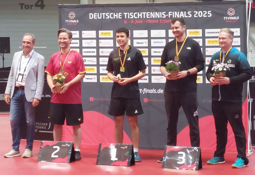 Doch Platz 3 bei den Deutschen Meisterschaften und somit der Gewinn der Bronzemedaille ist ein toller Erfolg zu dem die gesamte Tischtennisabteilung ihrem Spitzenspieler herzlich gratuliert!