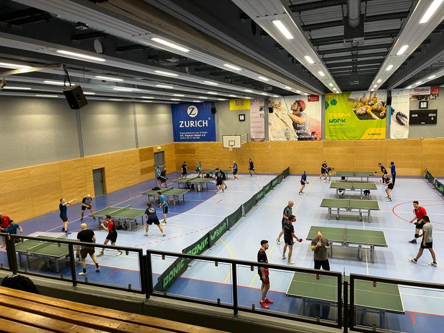 Zu ihrem erst zweiten Meisterschaftsspiel der Saison trat die 1. Herrenmannschaft am Freitagabend ohne große Erfolgsaussichten beim Meisterschaftsfavoriten SV Darmstadt 98 an. Erfreulicherweise konnte man aber die Partie – durch einen Doppelerfolg von Dominik Tischer/Florian Bender zu Beginn, sowie drei Einzelsiegen von D. Tischer (2) und Markus Schneider im vorderen Paarkreuz – bis zum 4:4 ausgeglichen gestalten. Doch dann besiegelte das starke hintere Paarkreuz der Gastgeber mit zwei deutlichen Dreisatzerfolgen die 4:6 Auswärtsniederlage.